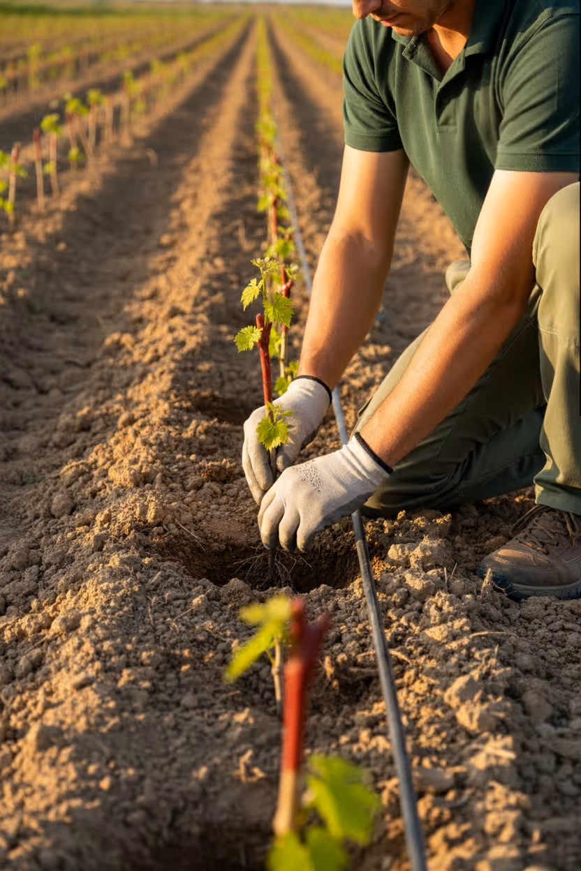Da preparação do terreno à instalação, realizamos plantações de vinhas completas com acompanhamento em todas as etapas.